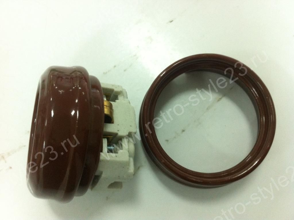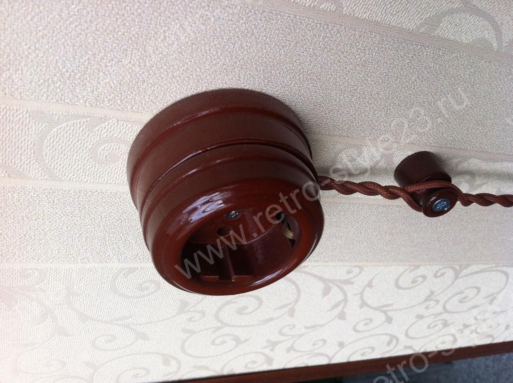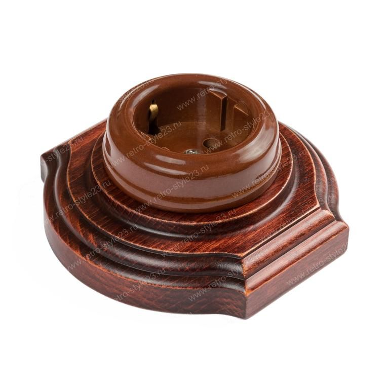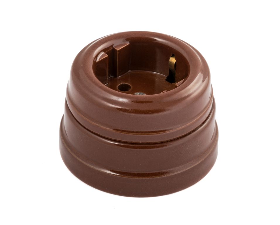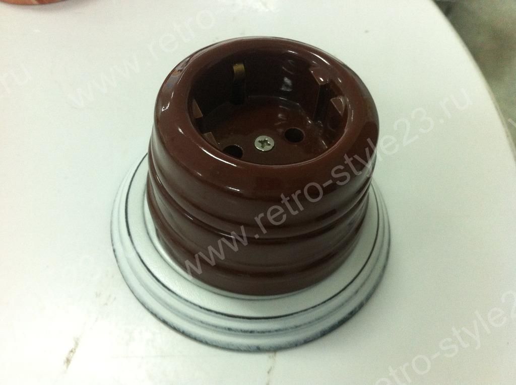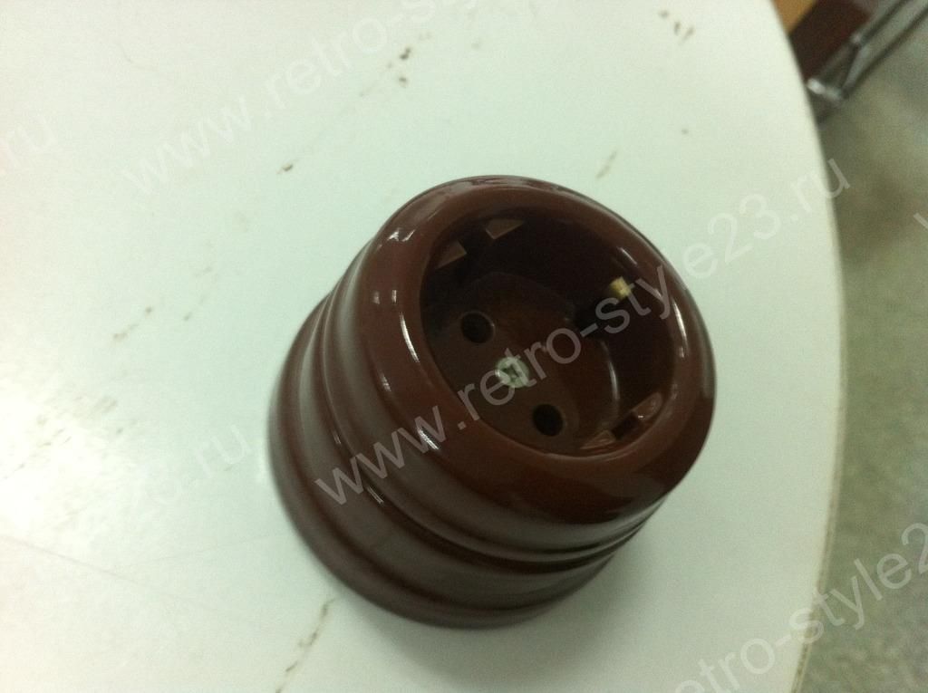 Двухполюсная ретро розетка фарфоровая с заземляющим контактом и подъемной рамкой