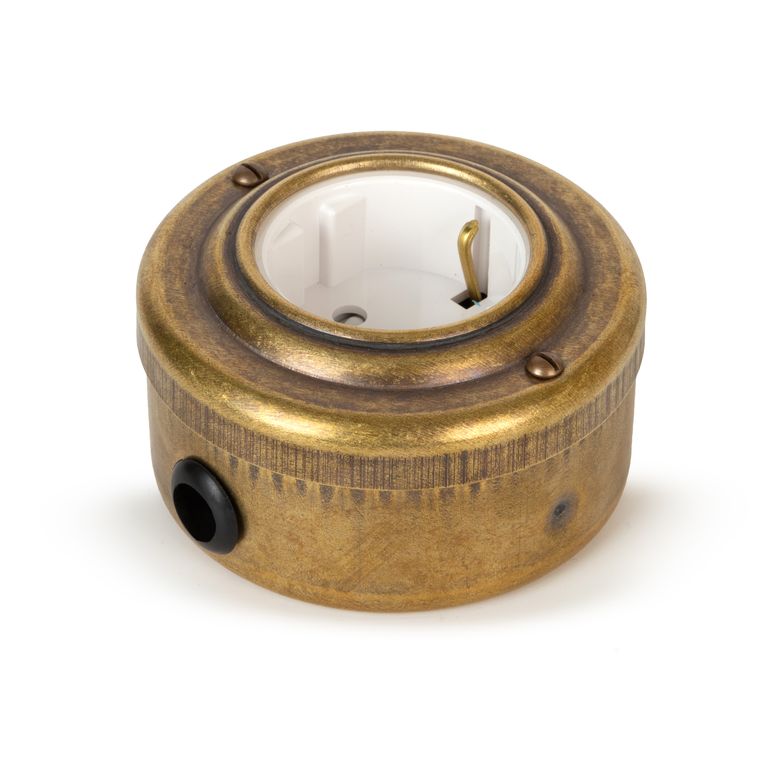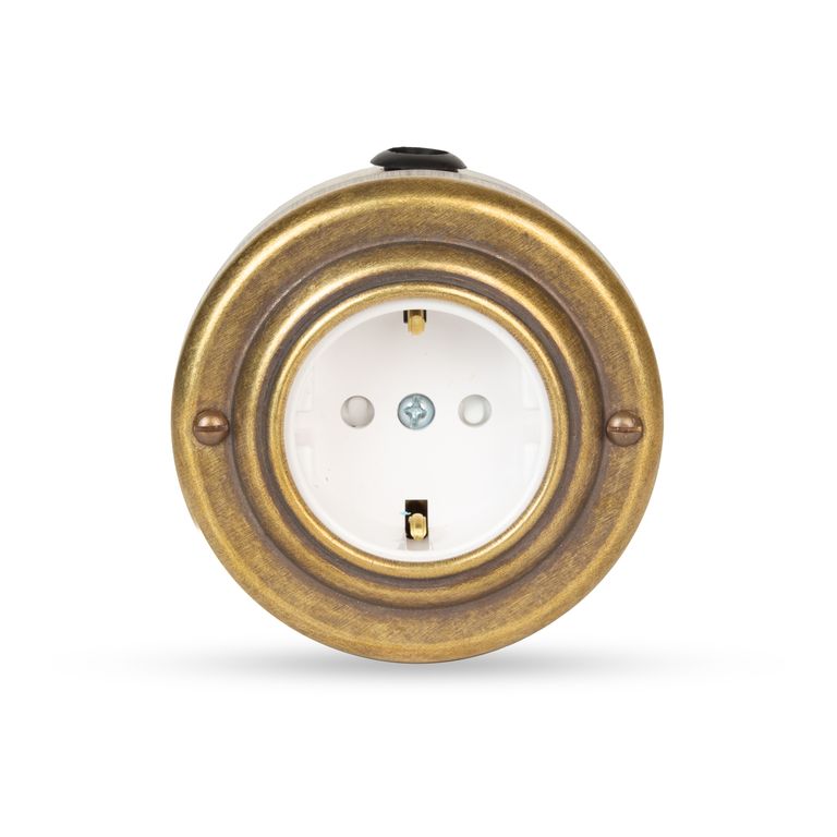 Ретро розетка металлическая бронза/белый (Vintage-brass)