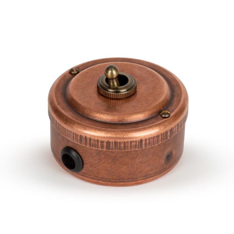 Материал корпуса: латунь, состаренная химическим методом. Цвет изделий может незначительно отличаться в зависимости от партии. Металлический корпус изолирован пластиковым подрозетником, крышка - электротехническим картоном.