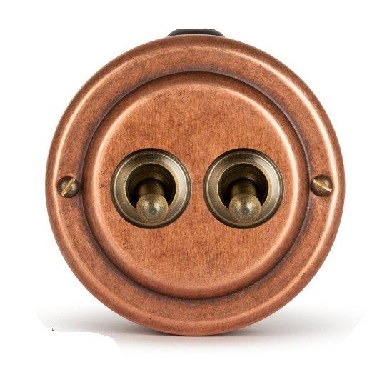 Материал корпуса: латунь, состаренная химическим методом. Цвет изделий может незначительно отличаться в зависимости от партии. Металлический корпус изолирован пластиковым подрозетником, крышка - электротехническим картоном.