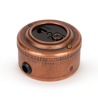 Розетка ретро компьютерная+ТВ "Старая медь". Телевизионная и компьютерная розетка в одном корпусе. ТВ розетка - оконечная, механизм розетки компьютерной - RJ-45, кат.5е, UTP модуль (8 контактов). Материал корпуса - латунь, состаренная химическим способом.