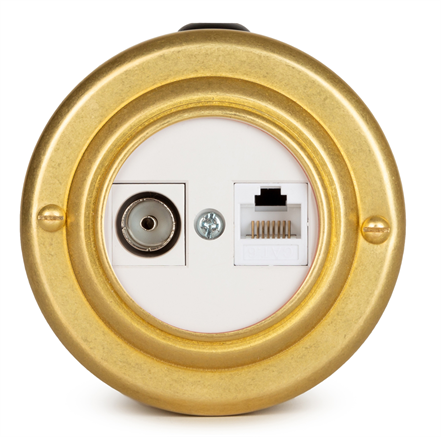 Розетка ретро компьютерная+ТВ "Золото". Телевизионная и компьютерная розетка в одном корпусе. ТВ розетка - оконечная, механизм розетки компьютерной - RJ-45, кат.5е, UTP модуль (8 контактов). Материал корпуса - латунь, состаренная химическим способом.